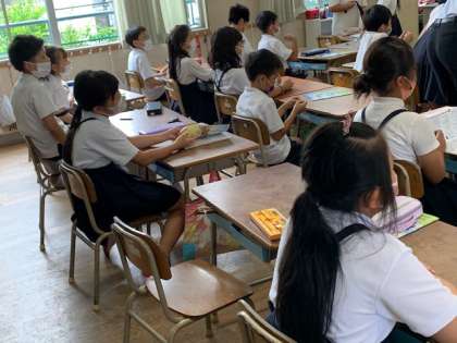 3年生 外国語〜楽しく英語に触れています! 公開日 2022/06/06 更新日 2022/06/06 お知らせ 3年1組の外国語の時間です。今日は、C-NETの先生と一緒に学習しました。あいさつの後、イラストに出てきた物を、C-NETの先生に続いて英語で発音します。時々フェイントもあり・・・楽しく英語に触れています。 続いて、「How many 〜.」の練習をしています。 いいね(0)