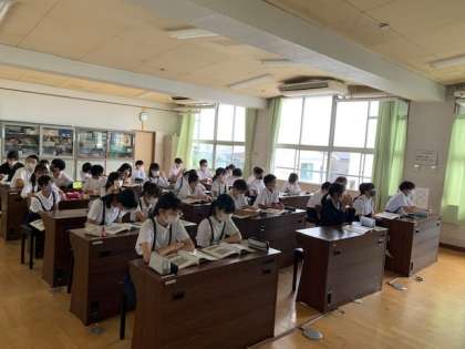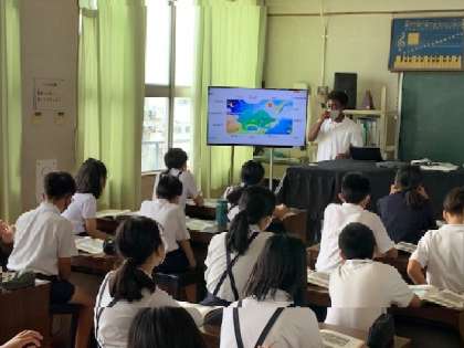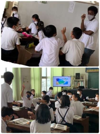 6年生 外国語〜C-NETの先生にチャレンジ! 公開日 2022/06/06 更新日 2022/06/06 お知らせ 6年生の外国語の時間です。1・2組合同で実施しています。山や海や湖、木や花、空や海、太陽や月などの描かれているイラストを使って、学習を進めています。みんなで一通り発音した後、チャレンジタイムです。C-NETの先生が示すものを英語で言えたらOKです。 いいね(0)