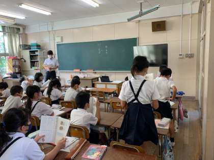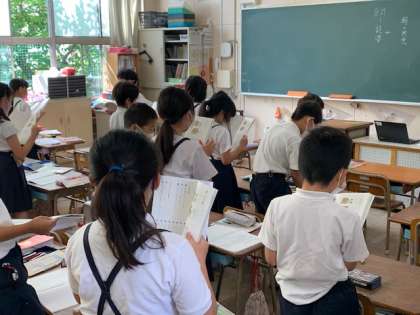 3年1組の国語の時間です。授業の初めに、まずは音読に取り組みました。