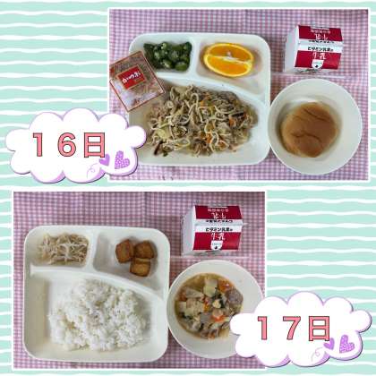 今日17日の給食は「ごはん、中華煮、あつあげのピリ辛じょうゆかけ、もやしの中華あえ、牛乳」でした。今日は、あつあげの味付けに使ったトウバンジャンの辛味がきいていて、低学年では「ちょっと辛い」という声もありました。でもごはんと食べたらおいしく食べることができたようです。