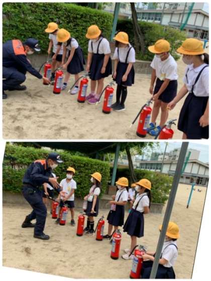 地域合同防災訓練・引き渡し訓練 公開日 2022/06/21 更新日 2022/06/21 お知らせ 中学年の児童は、西消防署の方から、「水消火器」の扱い方を教えてもらいました。グループごとに、実際に消火活動を体験しました。 いいね(0)