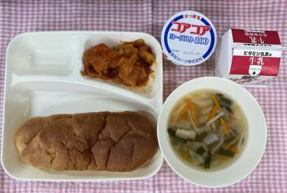 今日の給食2〜ちょっとピリッと〜 公開日 2022/06/23 更新日 2022/06/23 給 食 今日の給食は「黒糖パン、えびのチリソース、中華スープ、ヨーグルト、牛乳」でした。えびのチリソースは大きめのえびにでんぷんをまぶし、油で揚げています。それとたまねぎをあわせ、ほんの少しトウバンジャンで辛味をきかせたケチャップで味付けしています。低学年にはちょっと辛いかも?と思いましたが、大人気。パンと一緒に食べたり、それだけをじっくり味わったり。ボリュームもある献立でした。 いいね(0)