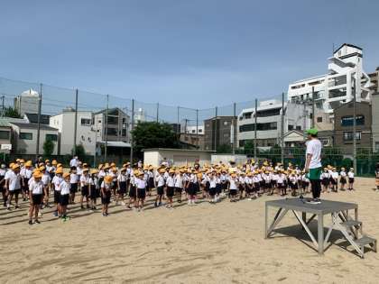 6月27日(月)の児童朝会は、運動場で行いました。校長先生からは、今日から始まる「ことばづかい週間」と水泳学習についてお話がありました。(詳しくは、「校長室だより NO14」をご覧ください。校長室だより NO14)担当の先生からは、生活目標「気持ちのよいあいさつをしよう」について、お話をしてもらいました。「ことばづかい週間」について、担当の先生からもお話がありました。今年度は、1週間の取組後に、「ふりかえりカード」をご家庭へ持って帰ります。おうちの方のコメントをいただく形になっていますので、ご協力よろしくお願いします。また、生活指導担当の先生から、「ジェイボードやスケートボードなどの遊び方」についての話もしてもらっています。