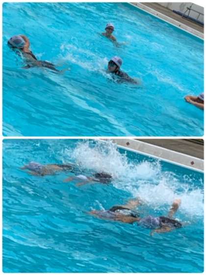 「バタ足」の練習に続いては、手の動きをつけて「クロール」を教えてもらう予定です。