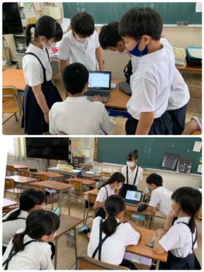 グループごとに分かれて、修学旅行の行程の紹介だけでなく、自分たちが行ってきて感じたことなども併せて紹介しています。5年生が「修学旅行を、より楽しみになるように!」との願いを込めています。