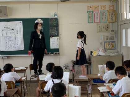2年生 国語〜えっちゃんの気もちをそうぞうして声やうごきであらわそう! 公開日 2022/07/21 更新日 2022/07/21 お知らせ 「どのように読むのか」「どのような動きをつけるか」「なぜそうのようにしたのか」・・・読み方の工夫についてグループでも意見を交流し、全体の前でも発表しました。そして、最後は、何人かの代表が、えっちゃんになって、感情を込めてセリフを言ってくれました。学習の最後のふりかえりを見ても、児童のがんばりが感じられました。 いいね(0)