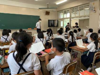 6時間目は、お招きした講師先生による特別授業をしていただきました。講師先生は、「フレームリーディングで子どもの読みの力を伸ばす」ことを研究されています。フレームリーディングは、自分の身につけてきた「目のつけどころ」をもとに、それを常に更新しながら言葉の力を身につけていく読みの手法だそうです。