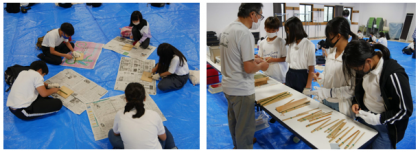 お弁当の後は、予定を変更して竹箸づくりを行いました。林間学習での食事に使うことになります。