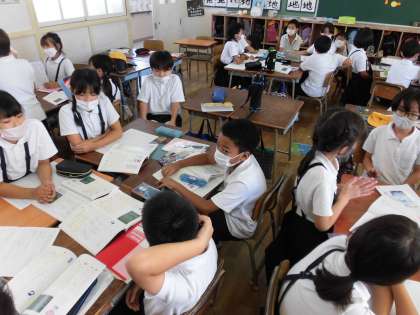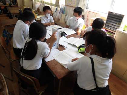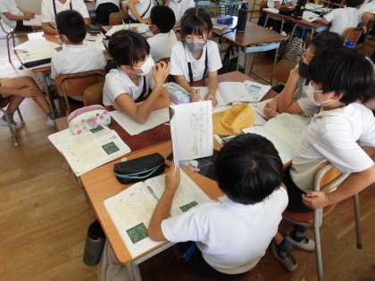来年入学してくる子たちに九条北小学校のしょうかいしたいところをテーマに話し合いました。