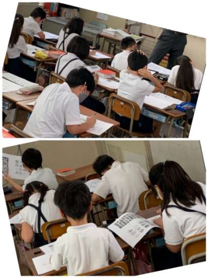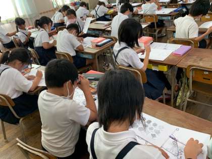 3年生 図工〜ペン1本で描き込んでいきます! 公開日 2022/09/05 更新日 2022/09/05 お知らせ 3年1組の図工の時間です。作品「ゼンタングル」に取り組んでいます。「ゼンタングル」とは、ペン1本で単純な模様を書き込んでいく技法で、描き込みをしていると、心が落ち着くといいます。画用紙に描いた「猫」の絵に、見本を参考に、細かい模様を描き込んでいます。できあがりが楽しみです! いいね(0)