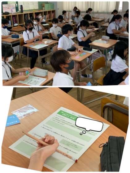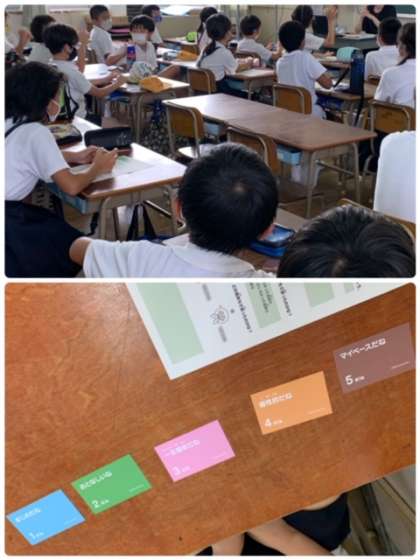 9月6日(火)、4〜6年生対象に、「情報モラル」の授業をしていただきました。今回の授業は、LINEみらい財団の講師の方とONLINEでつながって行いました。児童たちの手元には、5枚のカードとワークシート。講師の先生からの問いに、カードを選んで示します。例えば、「あなたが、クラスの友だちから言われて『いやだな』と感じる言葉を一つ選んでみましょう。」・・・近くの友だちとも、えらんだカードを互いに見せました。今回のONLINE授業で、児童たちは、人によって感じ方が違うんだということを学んだようです。学校での言葉だけでなく、モバイルを通してのメッセージのやりとりについても、学んだことを生かしていってほしいと思います。