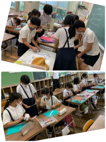 クラブ活動の様子です。4〜6年生の児童が、月に1回、集まって活動しています。今年度のクラブ活動は、「インドア」「スポーツ」「手芸・料理」「創作・科学」「パソコン・ゲーム」「ダンス」の6種類です。
