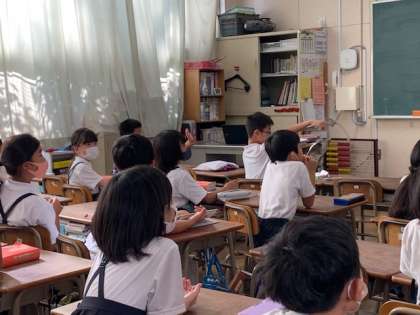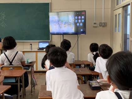 9月16日(金)の児童集会はTeamsで行われました。図書室と各教室をつないで、集会委員が考えた、楽しい企画を進めてくれました。今日の企画は、「何が変わったでしょうか?」です。最初に画面を記憶しておいて、次に出てきた画面では何が変わっているのか当てるゲームです。指名された児童が、マイクオンにして回答しています。