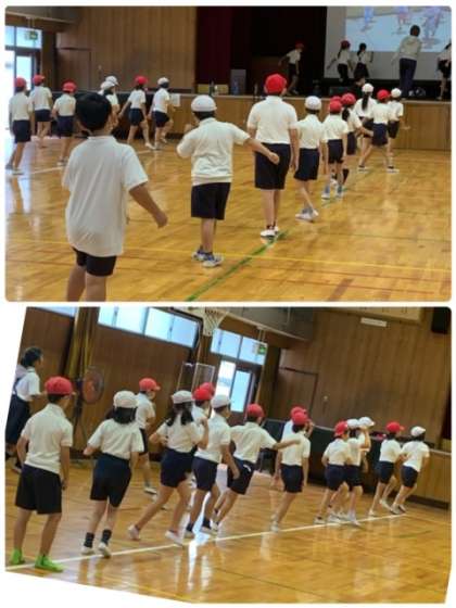 3・4年生 体育〜運動会に向けて! 公開日 2022/10/07 更新日 2022/10/07 お知らせ 3年生と4年生が合同で、運動会の団体演技で踊るダンスの練習をしました。先生から、1つ1つの動きを教えてもらいながら、覚えていきました。4年生は先に練習をしていたので、3年生の見本となってくれています。 いいね(0)