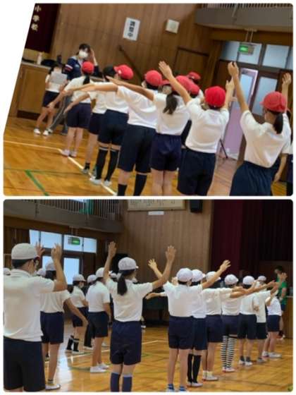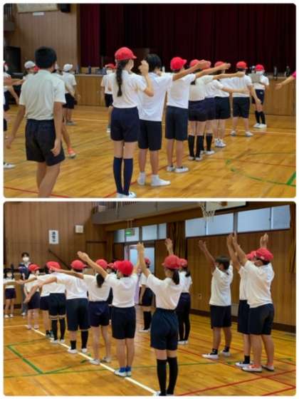5・6年生が、合同で運動会の集団演技の練習をしました。今年の高学年の集団演技は、「集団行動」を予定しています。みんなの動きが、しっかりと合うことで出来上がる集団行動です。難しい挑戦ですが、5・6年生に期待しています。この時間は、時間差で動く場面を、グループごとに動画撮影して確認しあいました。