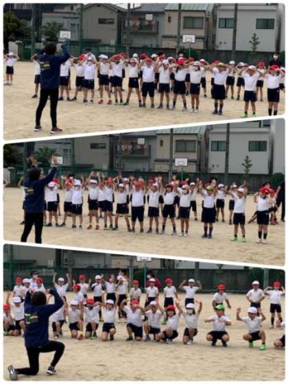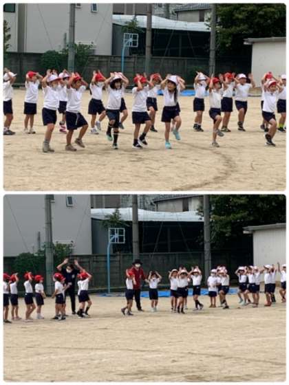 集団競技で行う「ダンシング☆玉入れ」の練習もしました。ダンスの動きや移動の仕方、玉入れにも挑戦しました。先生から「コツは、ふんわりだよ!」と教えてもらっていました。