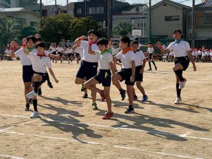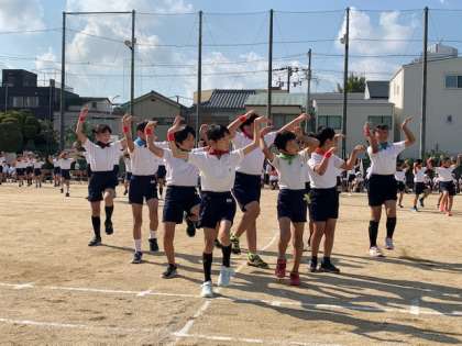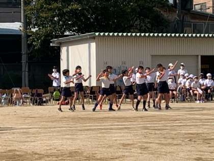 運動会〜勝利へのバトンをつなげ! 公開日 2022/10/23 更新日 2022/10/23 お知らせ プログラム4番、中学年による団体演技「九条北Soul brothers〜Kick and Slide〜」です。軽快な音楽に合わせて、楽しいダンスを見せてくれました。 いいね(0)