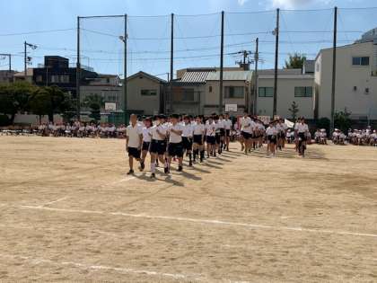 プログラム14番、高学年による団体演技「集団行動『心を一つに』」が始まりました。