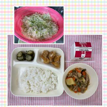 24日の給食〜ねぎだれがおいしくて〜 公開日 2022/11/25 更新日 2022/11/25 給 食 24日の給食は「ごはん、あげどりのねぎだれかけ、豚肉とじゃがいもの煮もの、きゅうりの赤じそあえ、牛乳」でした。あげどりは、そのままでもおいしいところに、白ねぎがたっぷり入ったねぎだれをからめて、さらにおいしさアップ!家でもからあげやたつたあげにアレンジできそうです。毎月配布している献立表に簡単な作り方も書いていますので、ぜひ参考にしてみてください。 いいね(0)