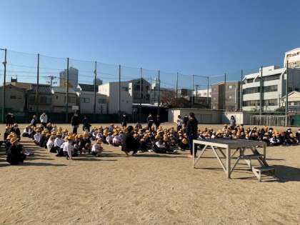 12月9日(金)、地震・津波を想定した「避難訓練」を実施しました。地震発生を伝える放送を聞き、児童たちは、机の下にもぐって頭部を守りました。1学期の防災訓練の時に教えてもらった「机のあしを手で持って動かないようにすることが大切」ということを覚えていて、実践していました。