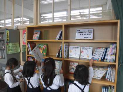 いただいた助成金で、「子どもたちが読みたいという意欲が高まる図書」「子どもたちの心情を揺さぶることができる図書」「言語力を高めることができる図書」「教科学習に関連した図書」「教科学習を張ってさせることができる図書」を考慮し、購入図書を選定しました。児童たちは、新しく増えた図書に、興味をいっぱいの様子!新しい本との出会いができました。