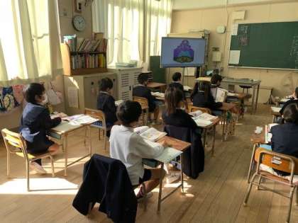 1年1組の道徳の時間です。読み物教材「おおひとやま」を読んで学習を進めています。先生からの問いかけ「おおひとやまが小さくなってしまったとき、みんなは、どんなことを考えたのだろう」について、自分の考えを発表しています。