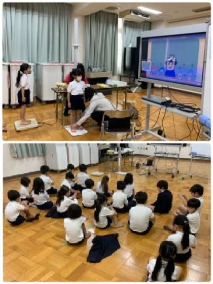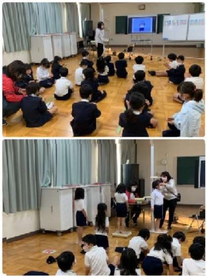 1月18日(水)、1年生の発育測定を実施しました。学期ごとの成長の様子が、よくわかります。また、今回は、発育測定の前に、「正しい手洗いの方法」について、保健室の先生から教えてもらいました。最初に、濡れた脱脂綿で手を拭いてみました。みんなの使った脱脂綿と使用前の脱脂綿を比べると・・・なんと、色の違いがわかります。きれいに見えて、実は、いろいろな汚れがついているから、こまめな手洗いが必要なんだと教えてもらいました。正しい手洗いの仕方については、「あわあわ手洗いの歌」を使って覚えました。