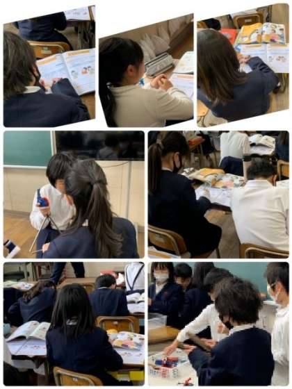 3年生の理科の時間です。課題「音が出ているときの、もののようすについて」調べました。「トライアングル」などを使って、「音が出ていないとき」と「音が出ているとき」「大きい音を出したとき」「小さい音を出したとき」について、指でそっと触れて、気づいたことをまとめました。いろいろ発見があったようです!