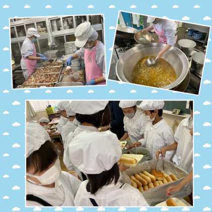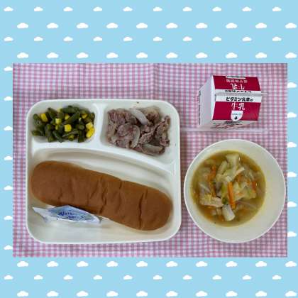 19日の給食〜食べてみたら〜 公開日 2023/04/19 更新日 2023/04/19 給 食 今日の給食は「コッペパン、豚肉のガーリック焼き、スープ、さんどまめとコーンのサラダ、ブルーベリージャム、牛乳」でした。豚肉はガーリックの風味よい仕上がり。さんどまめは食べやすい味付けで、野菜が苦手でもチャレンジしやすかったようです。1年生も食べてみたらおいしかったという子がたくさんいました。4年生の様子を見に行くと、配膳は手際よく、もちろんさんどまめもしっかり食べてくれていました。 いいね(0)