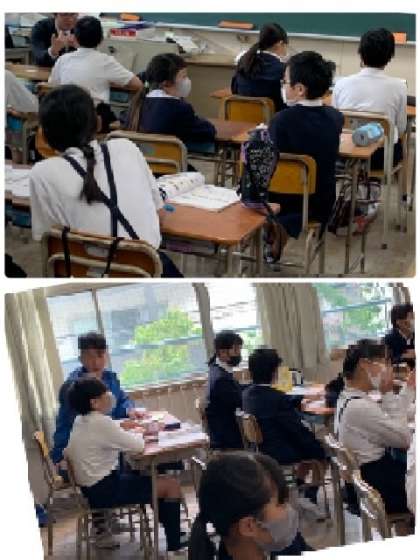 4月24日(月)、九条北小学校へC-NETの先生が来られる日です。6年生の外国語の時間には、「出身地やできることをたずね合おう」の学習をしました。最初に、C-NETの先生が英語で紹介し、聞き取ったことを発表していました。続いて、隣のお友だちとペアで交流しました。