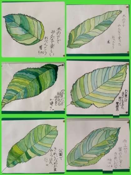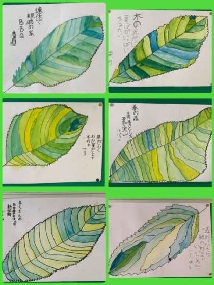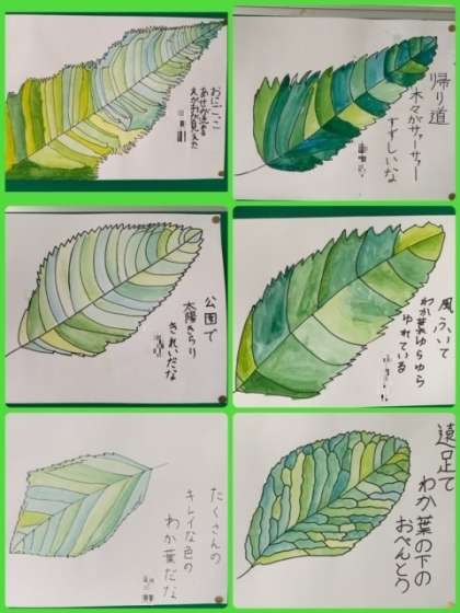 4年生 図工作品〜きれいな若葉を表現しました! 公開日 2023/05/11 更新日 2023/05/11 お知らせ 4年生が、図工の学習で、水彩絵の具の色の濃淡を使って「若葉」を表現しました。自作の俳句も添えて、素敵な作品ができあがりました。1Fの掲示板と教室の後ろに掲示しています。学校へお越しの際は、ぜひ、ご覧ください。 いいね(0)