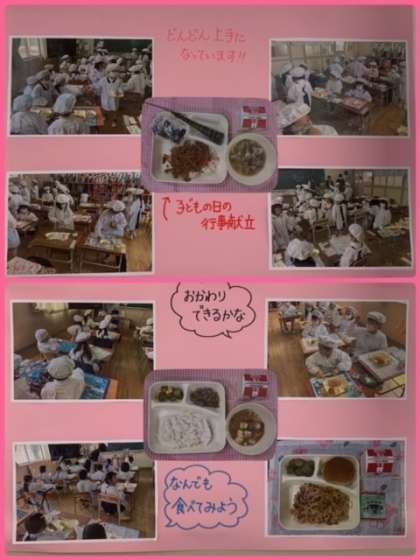 1年生の教室前に・・・ 公開日 2023/05/11 更新日 2023/05/11 お知らせ 1年生の教室前に、「給食の様子の写真」が掲示されています。入学すぐから今日までの成長が感じられますね。 いいね(0)