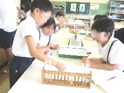 数種類の水溶液を、リトマス紙を使って何性か調べました。