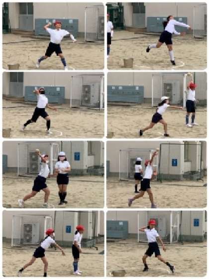 6年生は、運動場で、50m走とソフトボール投げを実施しました。