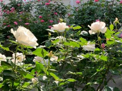 九条北小学校の南門のところにある「ばら園」では、まだまだきれいなばらの花が咲き誇っています。白色のばらの花だけは、満開の季節を終えたようですので、写真でお届けします。