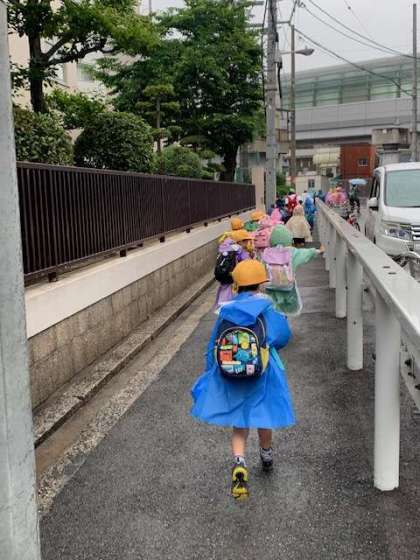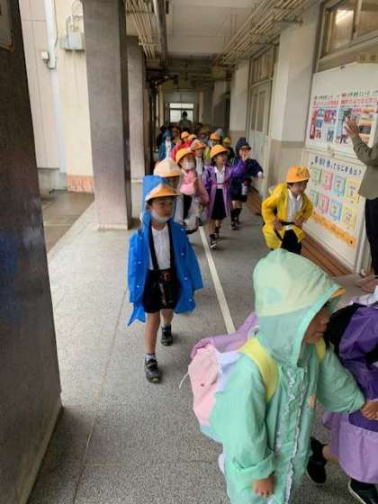 5月19 日(金)、1.2年生の遠足の日です。あいにくの雨ですが、元気に出発しました。