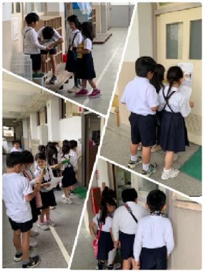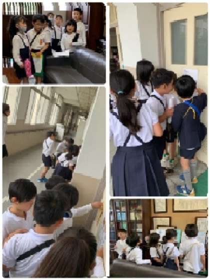 いろいろな教室の説明をしてくれています。入室できる場所では、中に入って見学もしました。