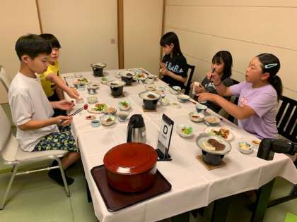 夕食中です。