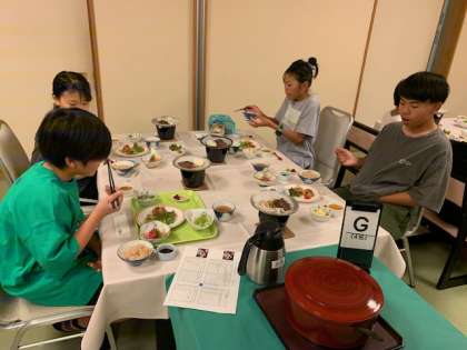 夕食中です。