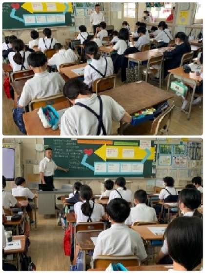 「いじめ」にあたる行為は、具体的にどんな行為があるのだろうか考え、発表しました。そして、「いじめの4つの立場」について、みんなで学んでいきました。5年1組の児童は、この日の学習を通して、「悲しい思いをした子」からは、3つの立場のすべての子が、ほとんど同じに見えるんだということを学びました。そこから、それぞれが、「いじめをなくすために、自分にできる行動」とは何があるか考えました。