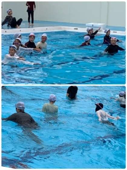 着衣水泳(高学年) 公開日 2023/07/05 更新日 2023/07/05 お知らせ 7月3日(月)、高学年対象に「着衣水泳」を実施しました。まずは、服を着た状態で水の中に入ってみました。水着の時との違いに、驚いていました。水の中を移動するのも、一苦労・・・。体の力を抜いて、大の字になって水に浮く練習もしました。 いいね(0)