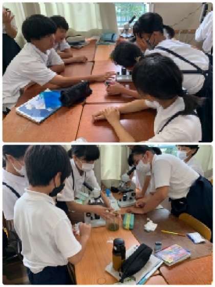 6年生 理科〜池や川の水中の小さな生物! 公開日 2023/07/13 更新日 2023/07/13 お知らせ 6年生の理科の時間です。自然の池や川にすむメダカは、えさをあたえなくても育っています。メダカの食べ物となるような水中の小さな生物を調べました。 九条北小学校の中庭の池の水を採ってきました。スポイトで一滴採って、顕微鏡で観察しました。観察した結果は、班で協力してノートにまとめました。 いいね(0)