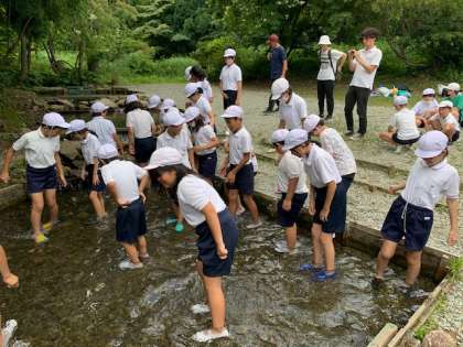 魚つかみを開始しました。想像以上に冷たい水に…。