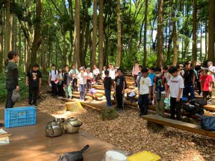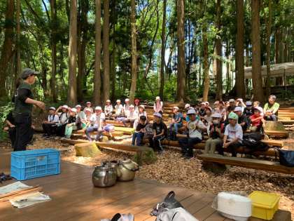 次は、野外炊事、カレー作りです。手順や、気をつけることを、宿舎の方から聞いています。