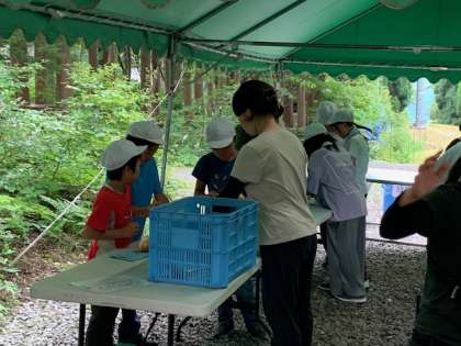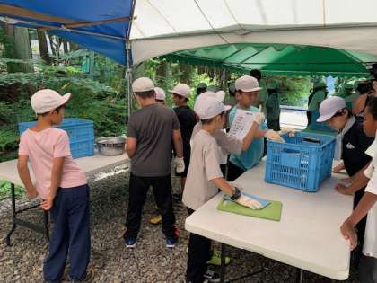 野外炊事が始まりました。各班、かまど係とカレー係に分かれて活動しています。
