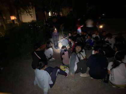 室内オリンピックの後は、ナイトウォークに出かけました。真っ暗な中で見上げる夜空には、たくさんの星か…。大阪市内では、見ることができない星の姿を楽しみました。流れ星も見つける幸運がありました。