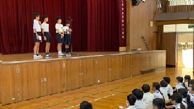 8月25日(金)、今日から2学期が始まりました。始業式の前に、代表委員会より「あいさつ週間」についてのお知らせがありました。