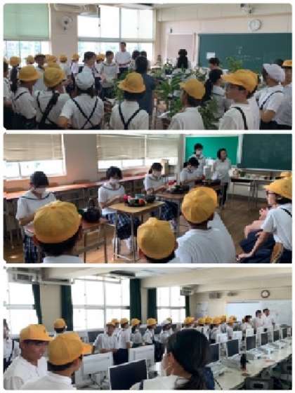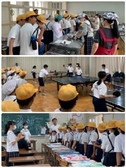 まずは、家庭科部・卓球部・美術部・パソコン部の見学をしています。