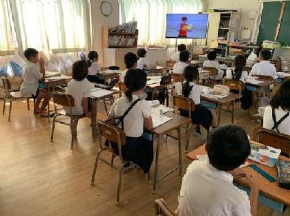 3年2組の理科の時間です。今、3年生は「風の力」について学習しています。今日は、授業の初めに、NHK FOR SCHOOL の動画を見ました。動画を見て興味津々です。
