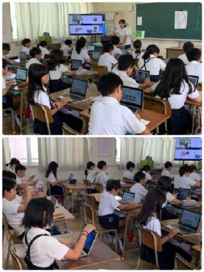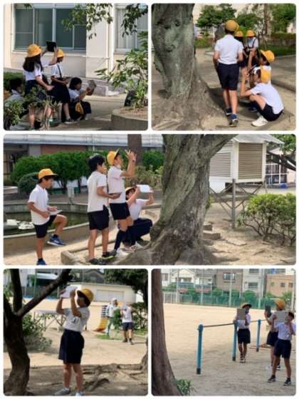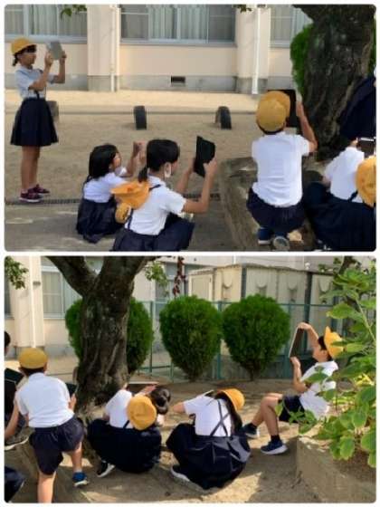 4年生 図工〜描きたい木の写真を撮ろう! 公開日 2023/09/07 更新日 2023/09/07 お知らせ 4年生の図工の時間です。これから描く作品の描き方を、最初に教えてもらいました。そして、タブレットをもって、画材となる木の幹などを撮影しています。撮影したい画角と太陽の位置がうまく合わなくて・・どの角度から撮ろうか考えながら取り組んでます。 いいね(0)